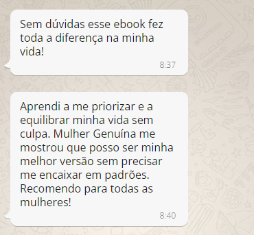 Veja o que as Mulheres que compraram o Ebook Mulher Genuína - A Jornada estão falando: